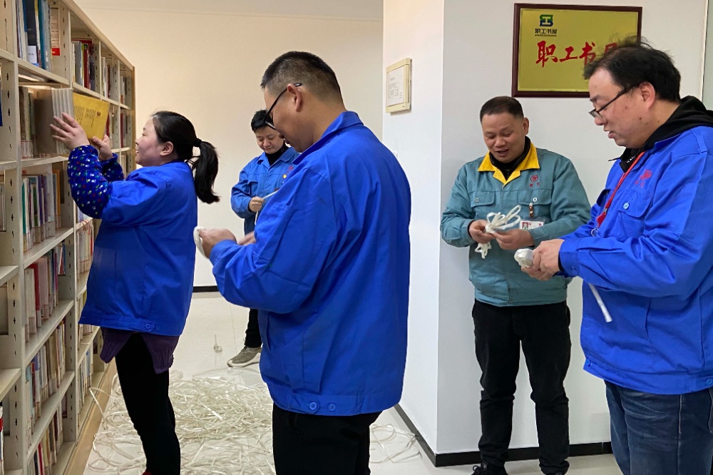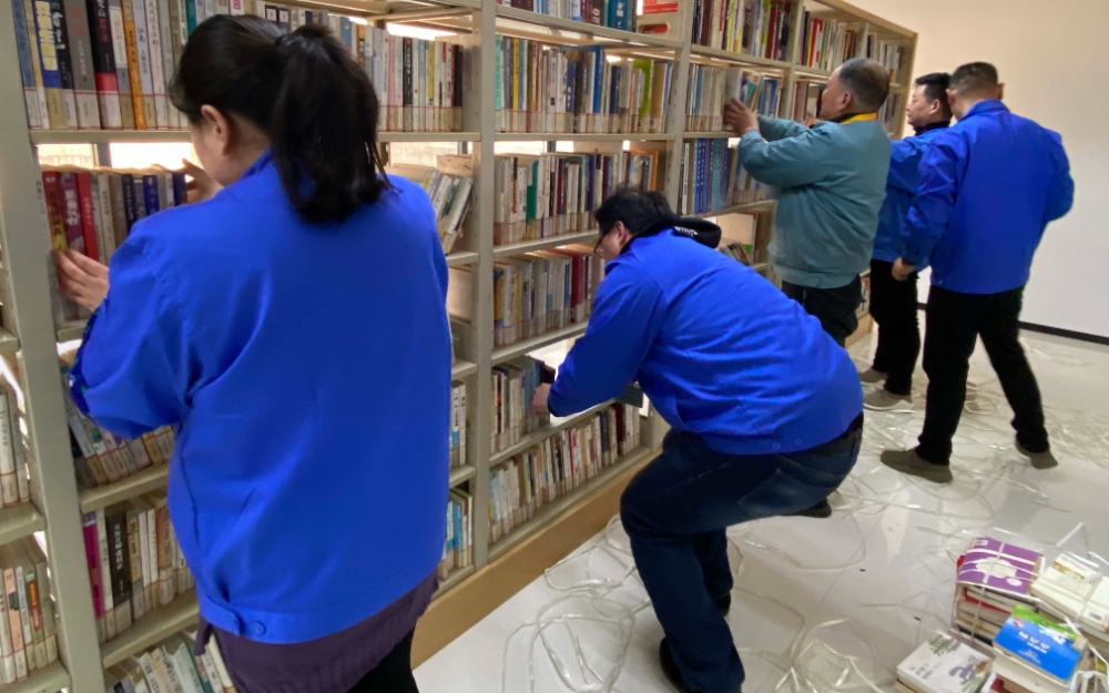 將2000冊(cè)圖書(shū)搬上書(shū)架并有序擺放是一項(xiàng)浩大的工作。2021年1月11日下午,幾位黨員志愿者發(fā)揮無(wú)私奉獻(xiàn)的志愿精神,來(lái)到我公司行政樓四樓的職工書(shū)屋,小心翼翼地把一摞一摞圖書(shū)搬上書(shū)架,并根據(jù)圖書(shū)的大小有序擺放整齊。在將圖書(shū)擺放整齊后,黨員志愿者們還將捆綁圖書(shū)的繩子進(jìn)行了整理。