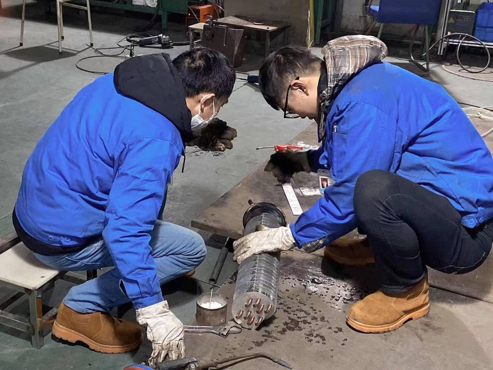 金工車(chē)間的電焊工小心翼翼地操作焊槍?zhuān)诤附雍昧肆芽p后,還進(jìn)行壓力測(cè)試,確保裂縫已完全修復(fù)好。將維修好的零部件裝上沖壓設(shè)備后,經(jīng)過(guò)一段時(shí)間的試運(yùn)行,現(xiàn)這臺(tái)設(shè)備已恢復(fù)正常生產(chǎn)。